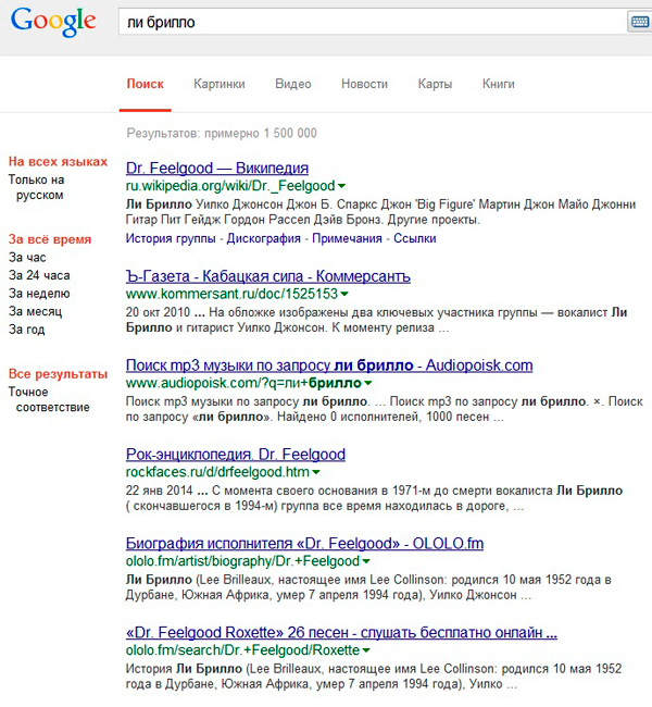 Alex Exler: Сергей искал в поиске информацию об исполнителе Ли Брилло. Google. Яндекс.