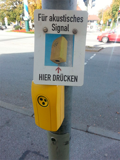 Там, где немецкий пешеходый переход, вроде символ-то глухонемых. Вот только кому они должны подавать звуковой сигнал (не себе же)?