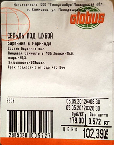 Игорь всегда считал, что сельдь под шубой делается из каких-то других ингредиентов, но магазину "Гиперглобус", вероятно, виднее.