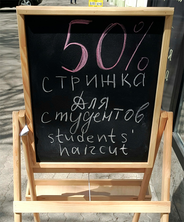 Если вы - студент, завлекает Алекс, то приходите получить 50-процентную стрижку. Одну половину головы постригут, другую половину - нет. Преподаватель так будет отвлекаться на вашу идиотскую прическу, что пропустит весь ответ и поставит пятерку.