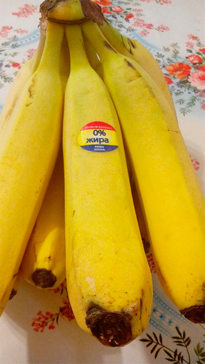 Подумаешь, бананы "0% жира"... Я вот видел на бутылке минералки надпись "без ГМО" - вот это действительно мощно!!!