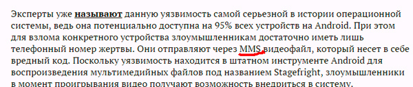 Алекс, ты же сам писал про выявленную уязвимость Android, которая позволяет атаковать устройство через MMS: http://exler.livejournal.com/3502922.html