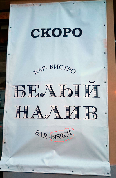Не знаешь, как написать это слово по-французски, советует Дмитрий, лучше и не пиши. А то в такой бар не захочется зайти даже за наливом.