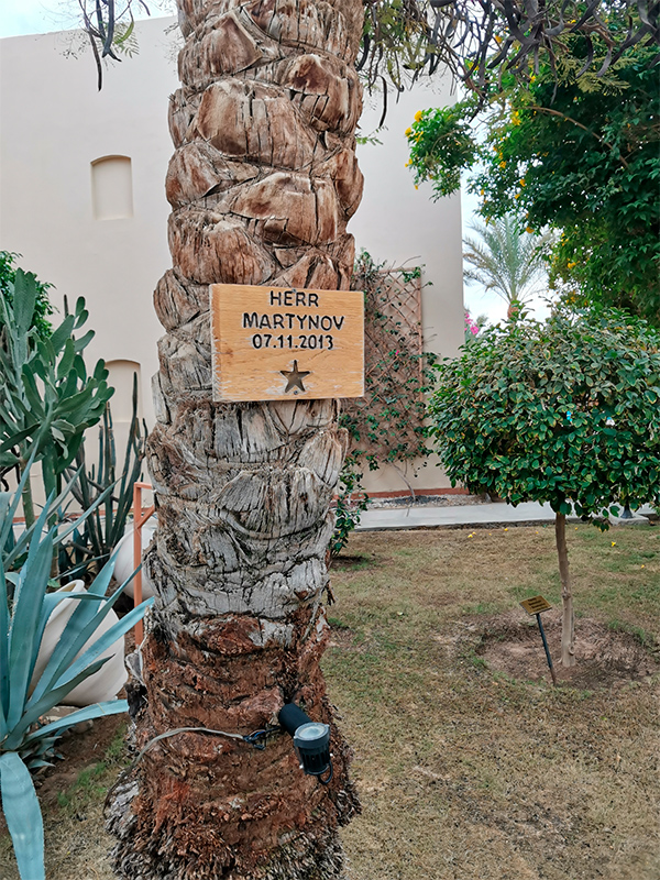 В одном египетском отеле, рассказал Константин, для постоянных клиентов, которые в отеле побывали не менее пяти раз, полагается именная табличка на пальме.