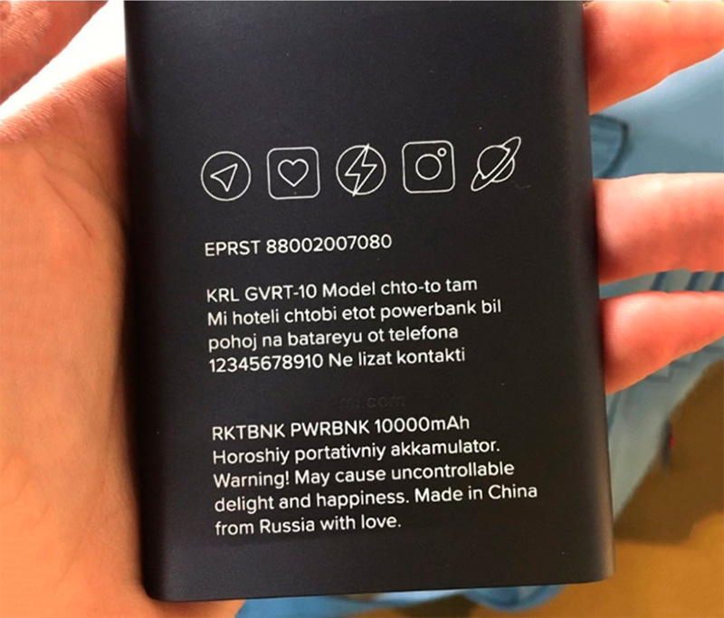 Гена Крокодил рекомендует вот такой внешний аккумулятор. Прочитайте текст, написанный латиницей.