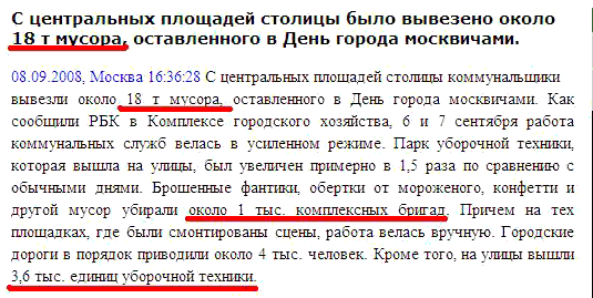 Молодцы! Умеют же, когда могут! По пять кило мусора на одну мусороуборочную машину - как они вообще столько нашли в нашем чистейшем городе?!!
