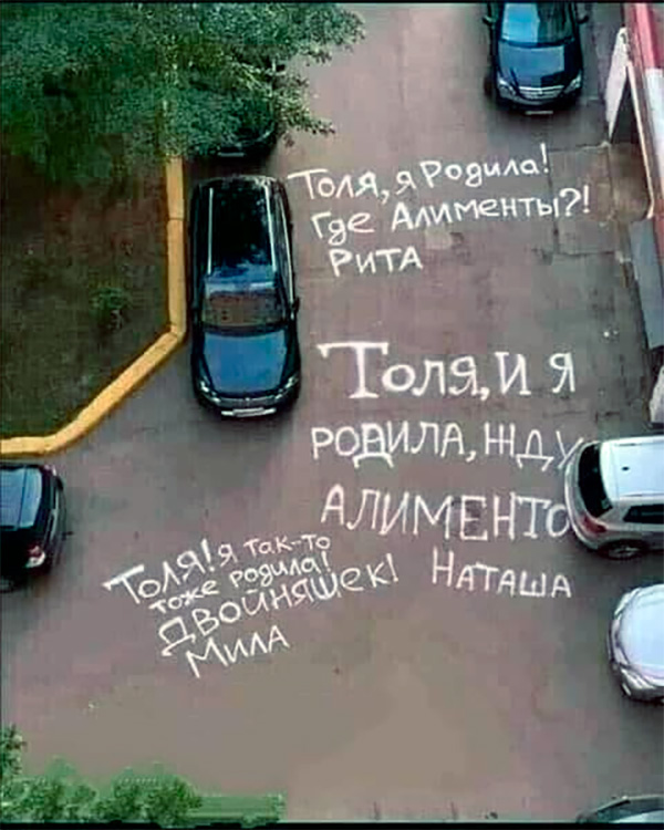 Толя похоже женщин по почерку подбирает. У всех он на удивление идентичен.