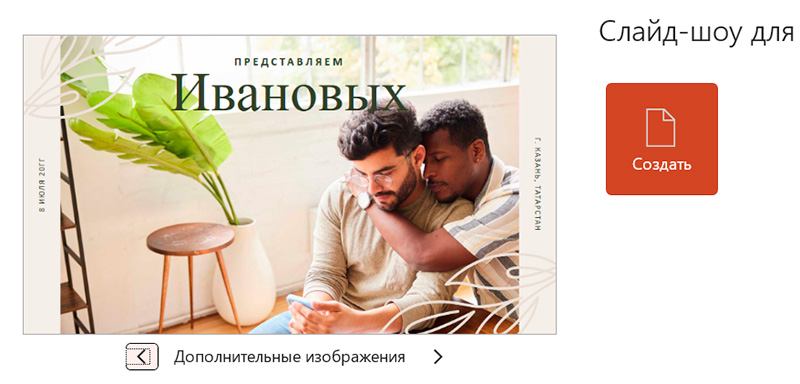 Программа Power Point корпорации Microsoft, рассказал Владислав, предлагает вот такой шаблон для презентации свадебного торжества. Ну что ж, поздравляем Ивановых! Как говорится, совет Ивановым да любовь, ну и детишек побольше!