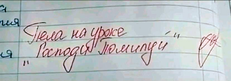Судя по всему, замечает Игорь, она пела на уроке "Господи, помилуй", чтобы ее господь избавил от таких учителей, которые в элементарной записи в дневнике делает сразу две ошибки.