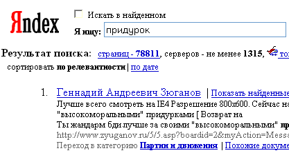 Fasimba жалуется, что до выборов еще далеко, а Яндекс уже сформировал свои политические пристрастия. Не верите? А вот введите на Яндексе слово "придурок":
