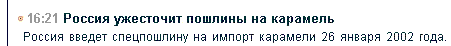(вздрогнув) Ужас какой! Как жить-то после этого, а? Ну ладно еще эти уроды повысили пошлины на старые иномарки, чтобы мы ездили на новых жигулях, которые хуже даже "Форда-Т", но карамель-то за что? Что им сделала карамель?!!