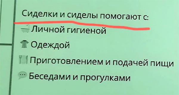 Сиделки – для голодранцев и нищебродов, сиделы – для солидных, обеспеченных клиентов уровня Валентины Матвиенко (см. мем "возможно падение сосулей"). Сиделы заберут вашего ребёна из спортивного круга, сводят вашу болону на прогулу, постирают вам простыну, сварят сосису, расскажут на ночь сказу.