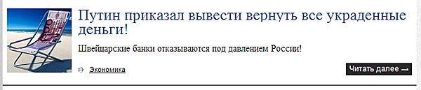 Умом Россию не понять, считает Елена. Путин приказал вернуть наворованное. А Россия надавила на Швейцарию, чтобы та не выдавала баблецо. То есть Россия против Путина. Круто!
