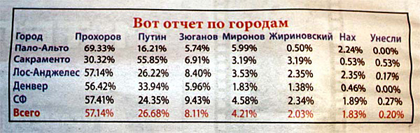 Гера прислал отчет по голосованию в американских городах. Странный отчет. Если "Нах" - это еще вполне понятно, то зачем кто-то куда-то что-то Унесли?!!