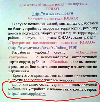 В ЮВАО столицы, радуется Антон, сделали отличный сервис для пользователей - itunes.apple.com! На это пошло несколько миллионов бюджетных денег, но зато результат - впечатляет!