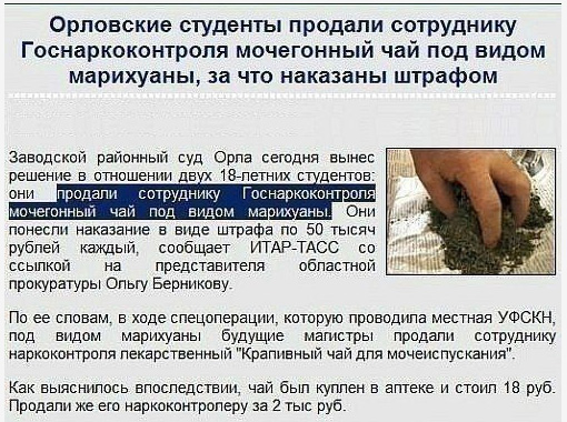 Профессионализм сотрудников Госнаркоконтроля не вызывает никаких сомнений, радуется Rus2k. Кроме как провоцировать они ни черта не умеют, да еще и крапиву за марихуану принимают.