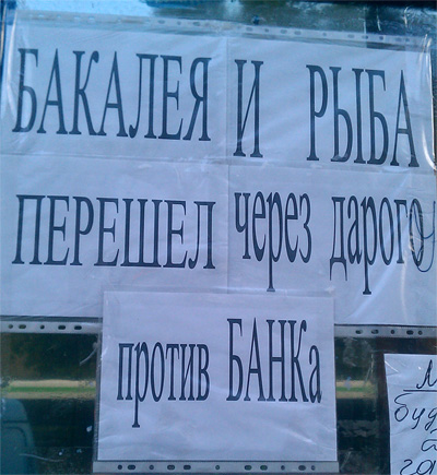 Бакалея и рыба перешел то ли черед дорогого, то ли через дорога к банку - в общем, что-то их на это сподвигло, считает Екатерина.