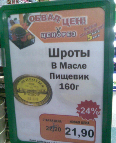 Шроты, да еще в масле Пищевика - это просто ням-нямушки, считает Таня. Видимо, поэтому 24% скидки у них получились такие своеобразные.