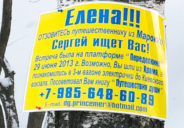 Дмитрий, который ищет Елену, наверное уже всех задолбал. У нас на остановке около дома каждый месяц вывешивает. Вот хорошо, когда у человека есть цветной принтер и ламинатор!
