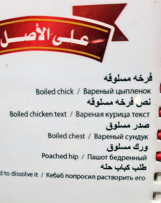 В порядке там только арабский. Если Вы не читаете по арабски, то я не представляю, как догадаться, что грудка (куринная, я надеюсь) переведена словом "вопрос".