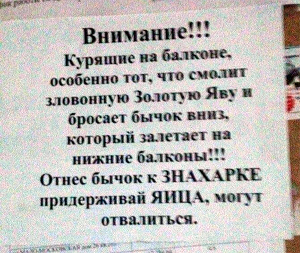 Кстати, доходчиво, считает Андрей. Он бы на месте смолящего зловонную Золотую Яву не рисковал бы.