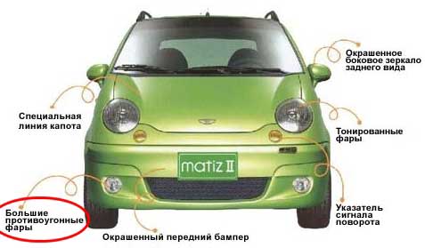 Потрясная машинка, да? Самое главное - большие противоУГОННЫЕ фары! Нигде больше такого нет! Подойдет злоумышленник ночью, а машина фарой ка-а-а-а-ак сверкнет этому гаду в глаз, тот с колес-то и слетит. И навсегда забудет, как машины угонять. Будет угонять только мотоциклы, потому что в них таких противоугонных фар нет. Впрочем, в мотоциклах, говорят, есть противоугонные зеркала. В них угонщик как посмотрится, так сразу с глузда-то и съедет, до того там страшная рожа.