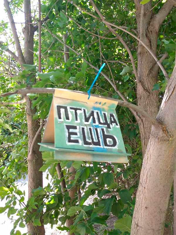 ПТИЦА ЕШЬ быстрым взглядом прочиталось как ПТИЦА ËЖ.