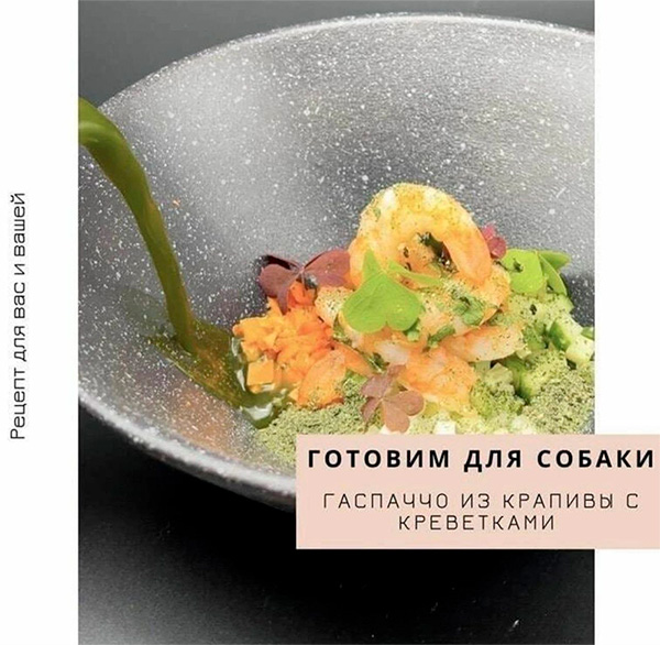 Нет, ну а что, собака - не человек, что ли? Ей тоже хочется гаспачо с креветками.