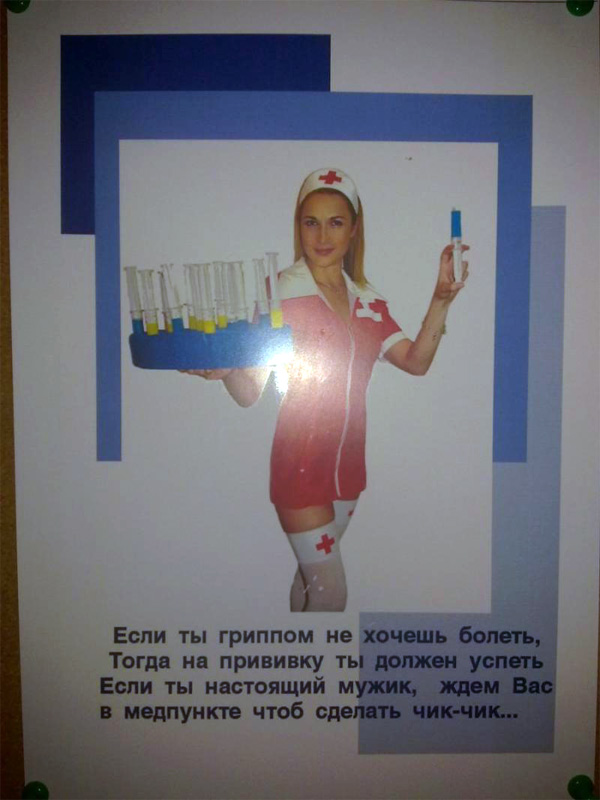 Баба со шприцами - это реклама клуба "Госпиталь" в Хабаровске. Соответсвенно в шприцах бухло.