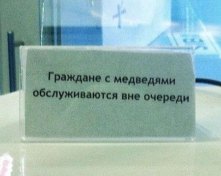 Хозяйке на заметку: граждане с медведями обслуживаются вне очереди даже при отсутствии таблички, об этом удостоверяющей. Главное, чтобы обслуживающий не сбежал вместе с очередью.