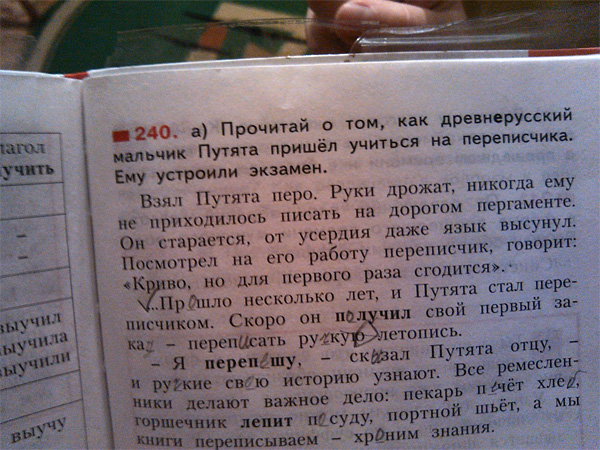 Какой третьеклассник-то находчивый, кстати. Не сообразил, что Путята должен был переписывать русскую рукопись, поэтому подставил "ч" на место пробела и... исправил "у" на "о". 😄