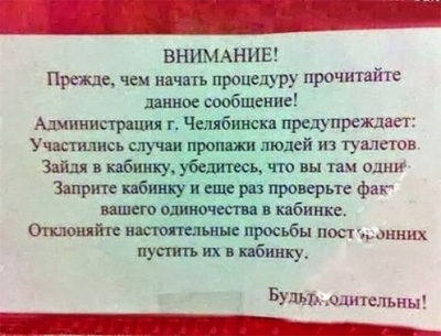 Мы знали, вздыхает Виталий, что в Челябинске - все очень сурово. Но что там такое творится в туалетах!..