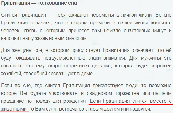 Подумаешь, гравитация... Эти сонники автоматом гребут слова из каких-то словарей - помнится, на форуме кто-то выкладывал скриншот с толкованием, к чему снится яфетидология. А самое весёлое, что мне она накануне как раз-таки и снилась - зря я читал на ночь книжку 1937 года по древней истории, выпущенную Институтом им. Марра...