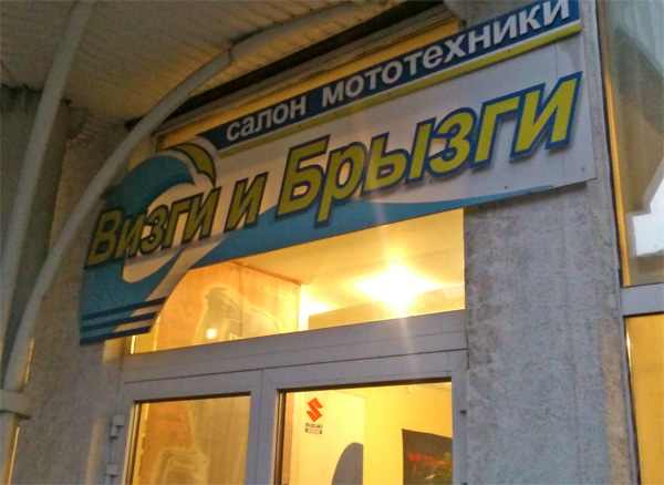 Дмитрия очень радует салон мототехники "Визги и брызги". А ведь и правда, если попасть под сенокосилку, то и визга будет, а уж брызгать во все стороны как будет!..