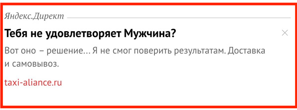Анна прислала рекламный креатив. Ну, внимание привлекает, да. Но что понимается под самовывозом в случае сервиса такси - непонятно совершенно. Также сочетание фразы "тебя не удовлетворяет мужчина" с "я не смоГ поверить результатам" - это уже голубизна какая-то. Ну его на фиг, такое такси, короче говоря. Пускай самовывозятся без меня.