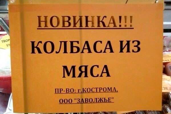 Колбаса из мяса? Сразу два вопроса: как они смогли до такого додуматься (явно кто-то подсказал рецептик) и что же они производили до этого?
