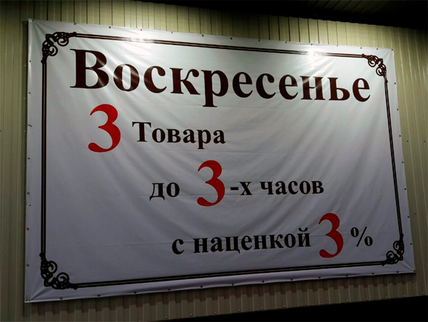 Я правильно понимаю, что 3 товара в воскресенье - это традиционные бутылка водки, плавленый сырок и пачка сигарет?