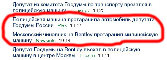 Заметьте, как за три минуты изменилась интерпретация, замечает Макс. Теперь уже злобные полицейские протаранили невинную депутатскую бентлю.