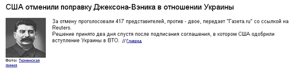 Ну хоть США при этом отменили поправку Джексона-Вэника - уже хлеб. Интересно, кстати, было посмотреть на этого мужика - вон, фотография рядом с заметкой. На Джексона, кстати, он не сильно похож. Зато вылитый Вэник - тут не поспоришь!