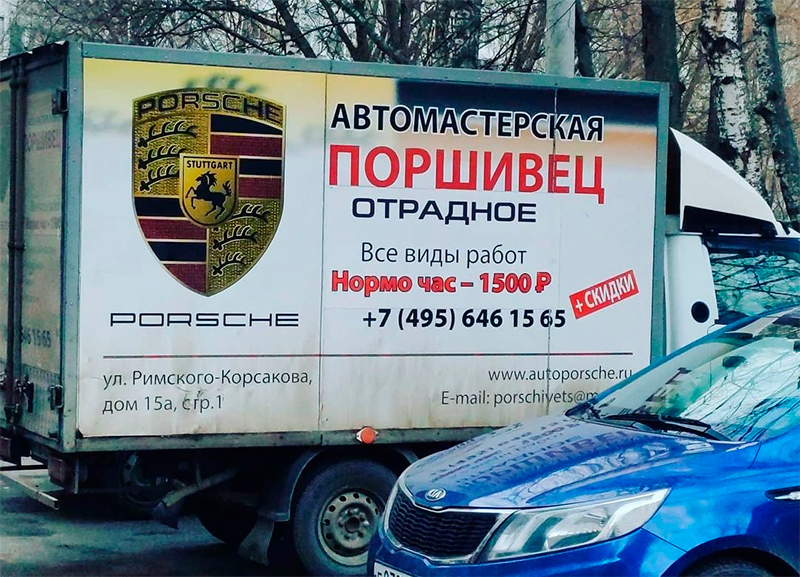 Автомастерская для автомобилей Porsche под названием "Поршивец"