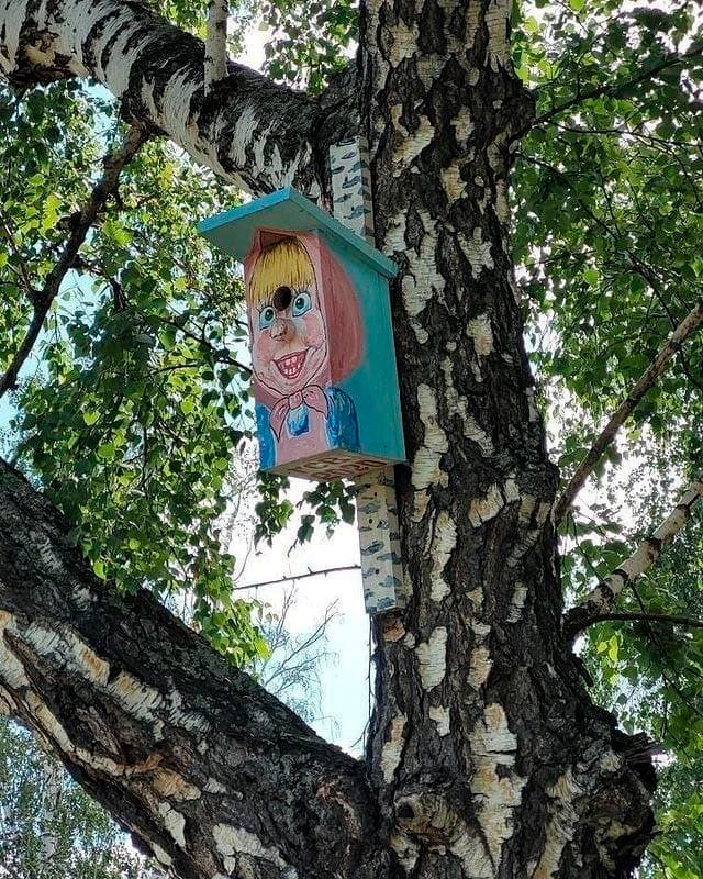 Своеобразная идея для скворечника, считает Загадочник. Девчушке башку то ли прострелили, то ли дятел продолбил.