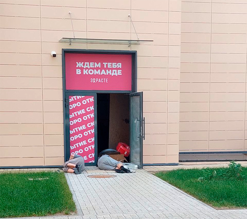 Чуваки перед "ждём в команде" не отдыхают, они монтируют что-то на уровне пола.