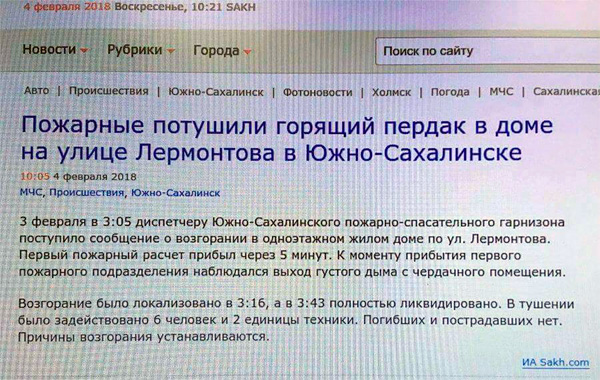 Журналисты всё перепутали, как обычно. Случай с горящим пердаком произошел не в Южно-Сахалинске, а в Южном Парке.