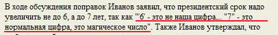 Иванов, рассказал Алексей, привел совершенно несокрушимые доводы в пользу того, что президентский срок должен быть семилетний, а не шестилетний.