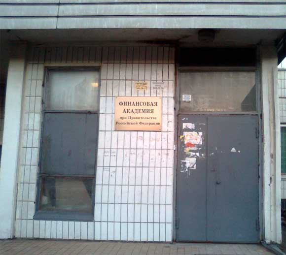 Катена у метро Дмитровская, что в Москве, в обычной панельке обнаружила замечательную Финансовую академию. При правительстве, между прочим! Добро пожаловать учиться. Только дверью сильно не хлопайте - жильцы нервничают, а уж академики так просто переживают!