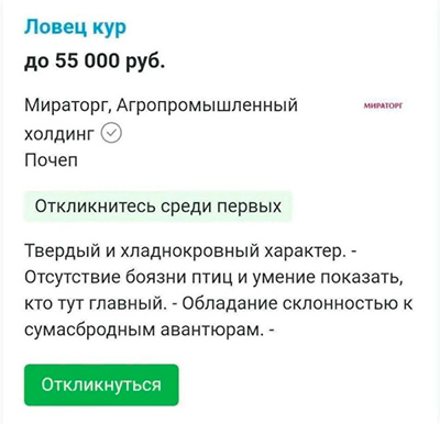 Не будем утверждать, что это прям работа мечты, но зато зарплата неплохая и можно применить склонность к сумасбродным авантюрам: например, похитить всех кур и сбежать с ними.