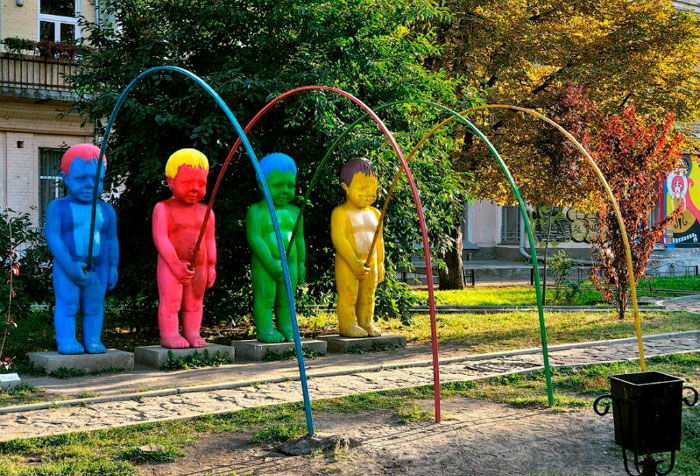 Писающие мальчики (такой себе арт объект) расположены в Киеве на Пейзажной алее.