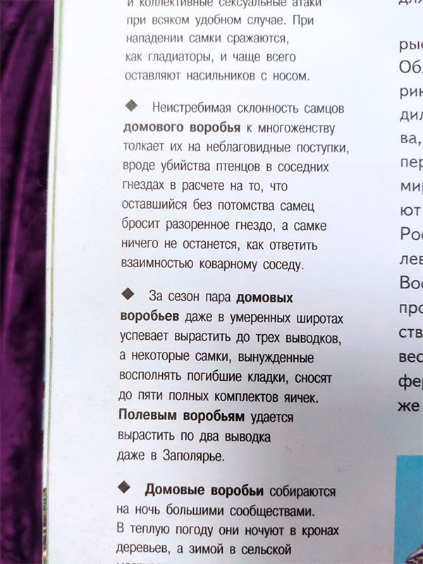 В энциклопедии "Живая природа", рассказал Ted, раскрыли всю подлую сущность домовых воробьев! Вот ведь твари, никакой приверженности традиционным ценностям!