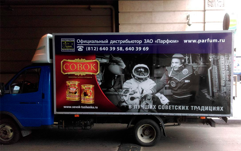 ЗАО "Парфюм", вздыхает Влад, продвигает консервы "Совок" в лучших советских традициях. Влад имеет несчастье помнить, что такое тушенка при Совке. Банка с жиром, в котором случайным образом затесалось несколько кусочков мяса. Тут, знаете ли, никакой парфюм не поможет!
