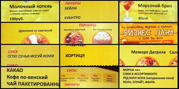 Александр сфотографировал чудесную вывеску-меню. Нет, это кафе находится не в Китае. Самая что ни на есть Россия - юг Урала.